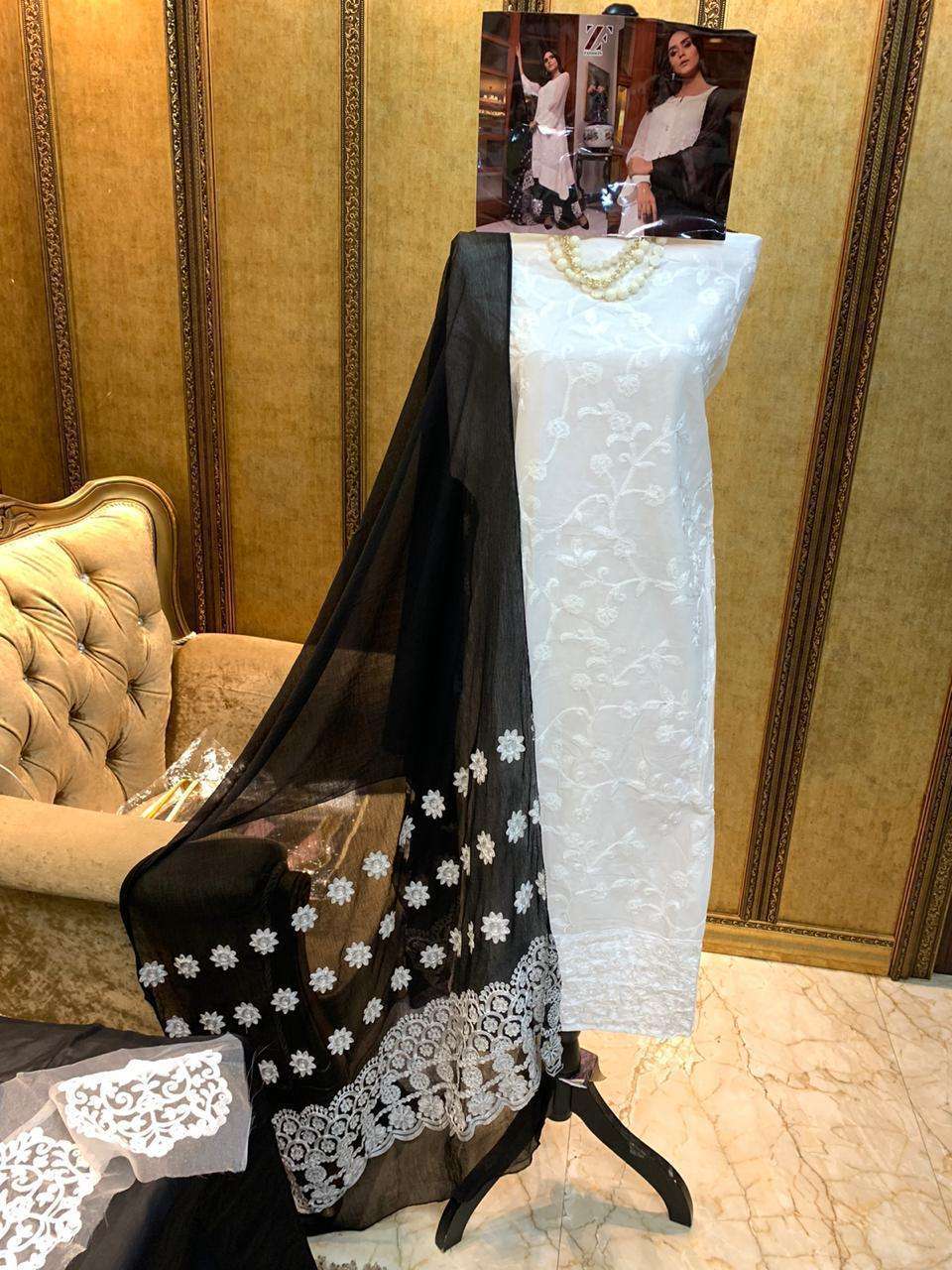 Zunairi Lawn Hit Design 1001 by Ziya Fashion in Black and White Colour